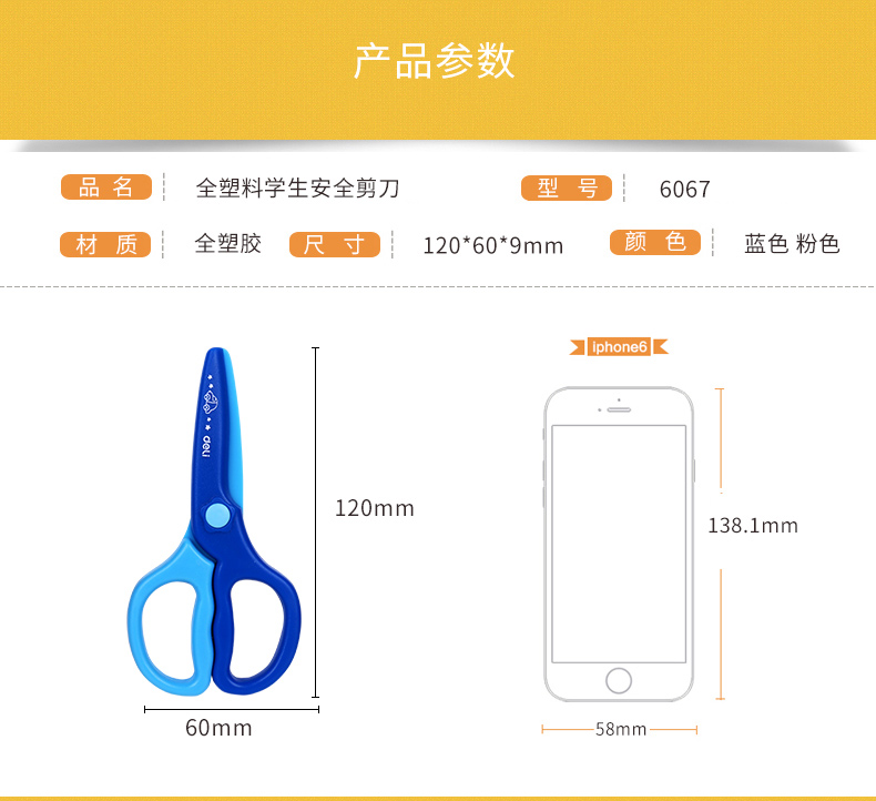 得力 6009不锈钢尖头剪刀 180mm 7寸剪刀