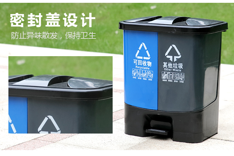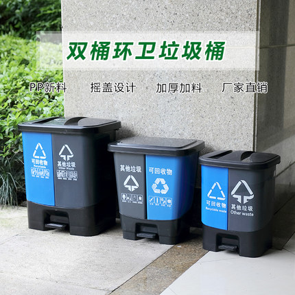 上海专用分类双桶垃圾桶 带盖商用脚踏 20L