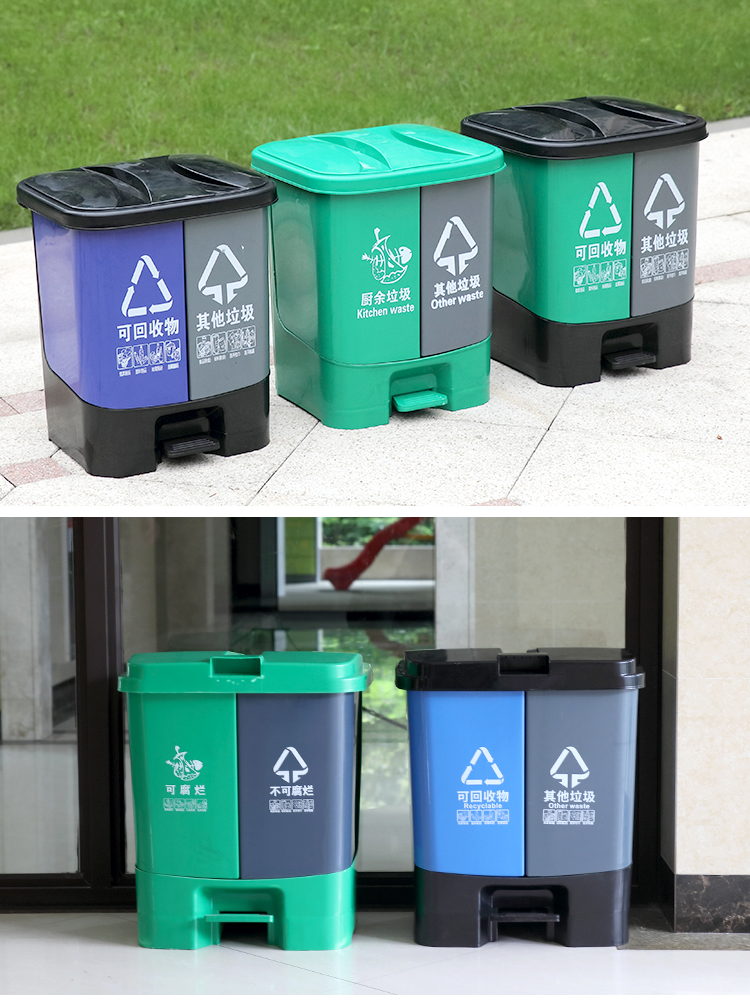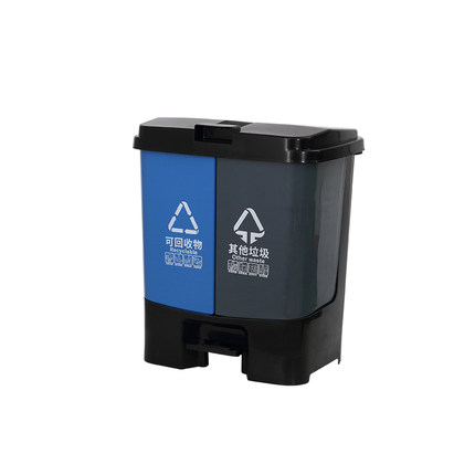 上海专用分类双桶垃圾桶 带盖商用脚踏 50L