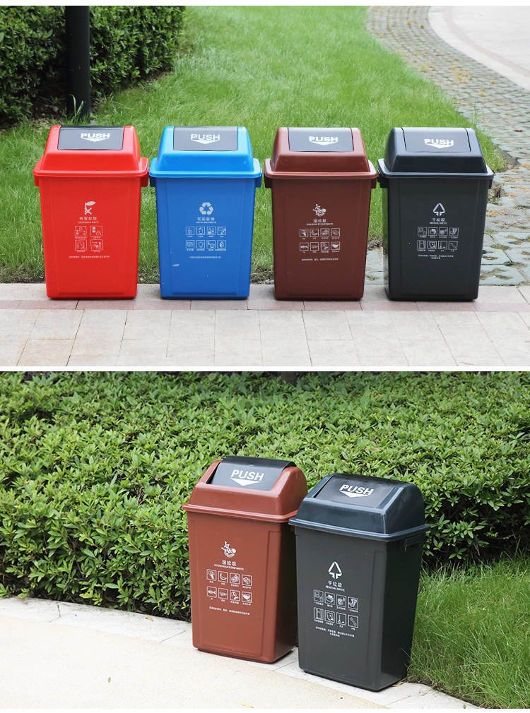 上海指定干湿分类摇盖户外垃圾桶 60L