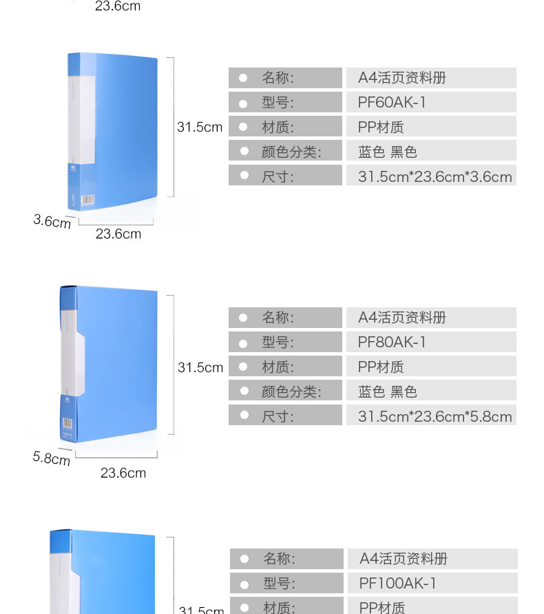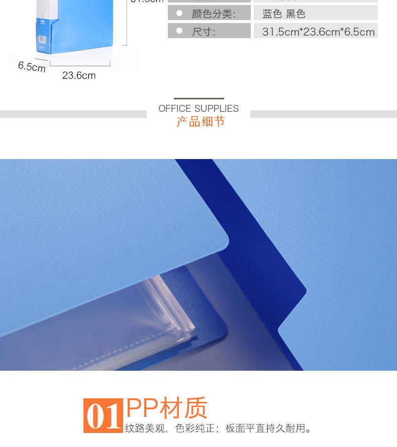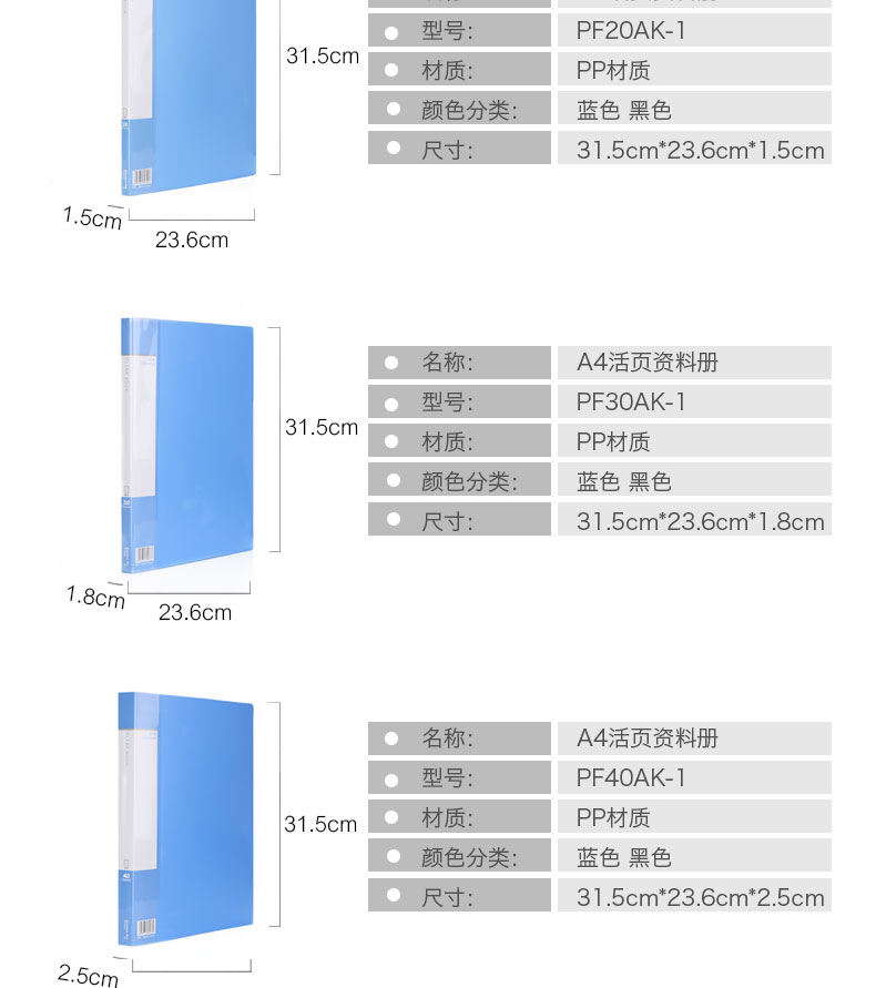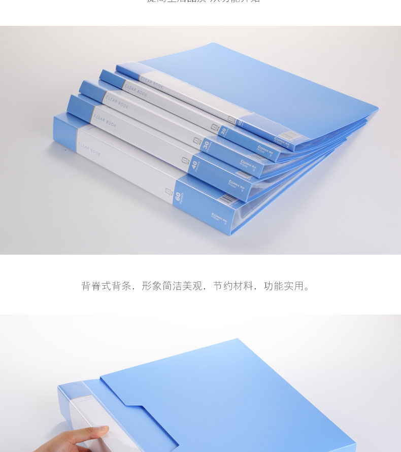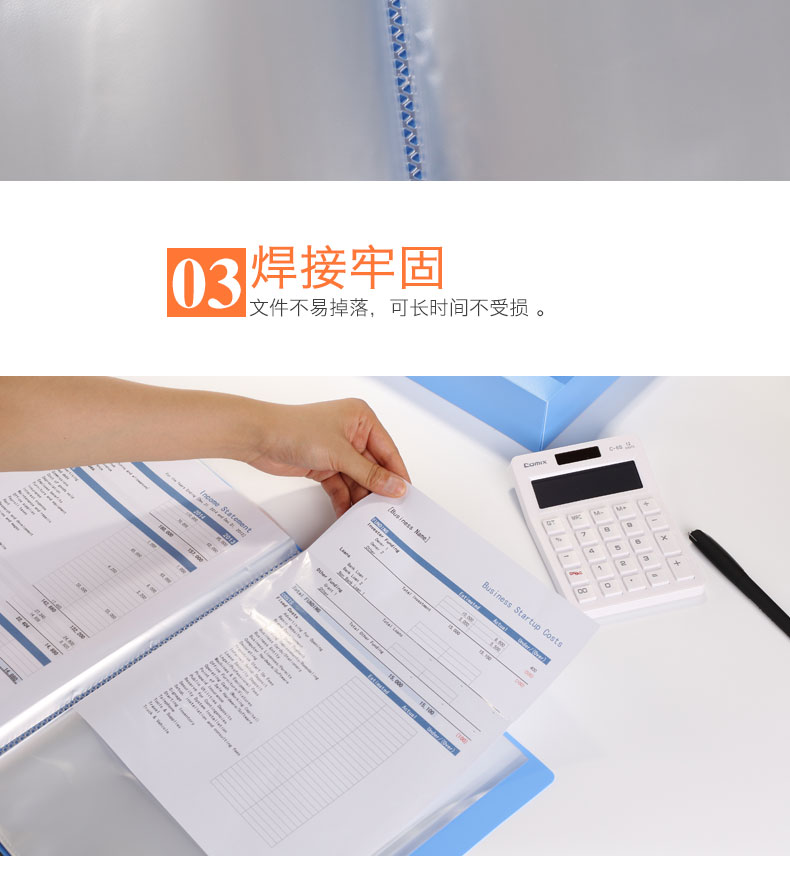 齐心PF20AK(蓝色)超省钱资料册 A4 20袋