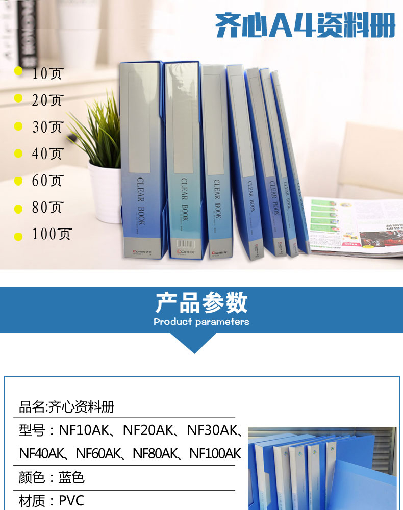 齐心NF10AK(蓝色)必备资料册 A4 10袋