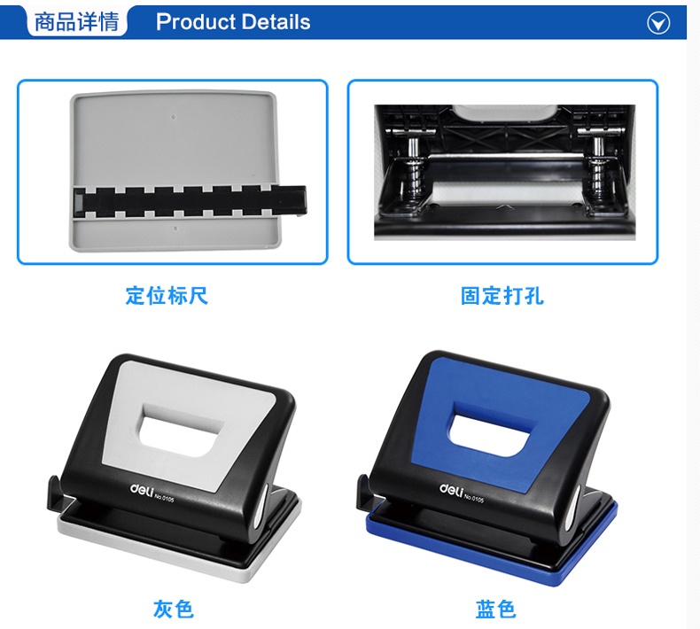 得力0105(混)两孔打孔机带标尺可打15页/80克