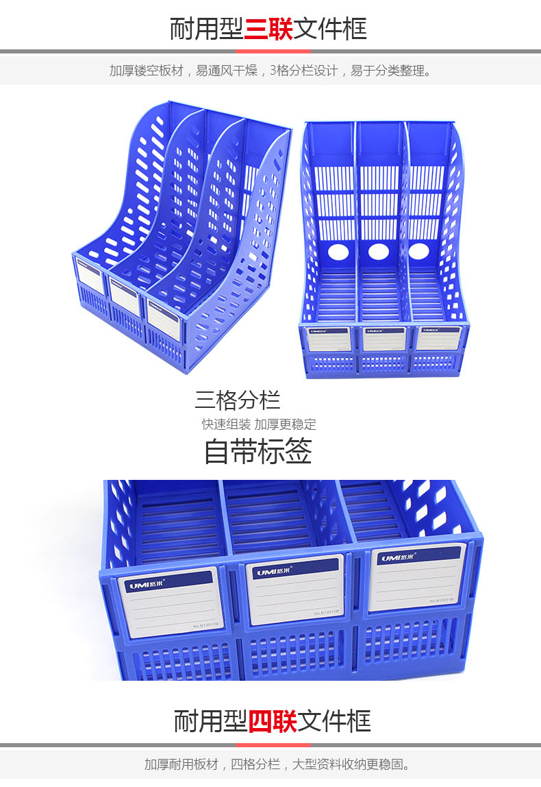 悠米(UMI)经济型四联文件框 B13002GR 灰