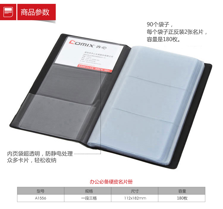 齐心(COMIX) A1556(黑)办公必备硬皮名片册 18...