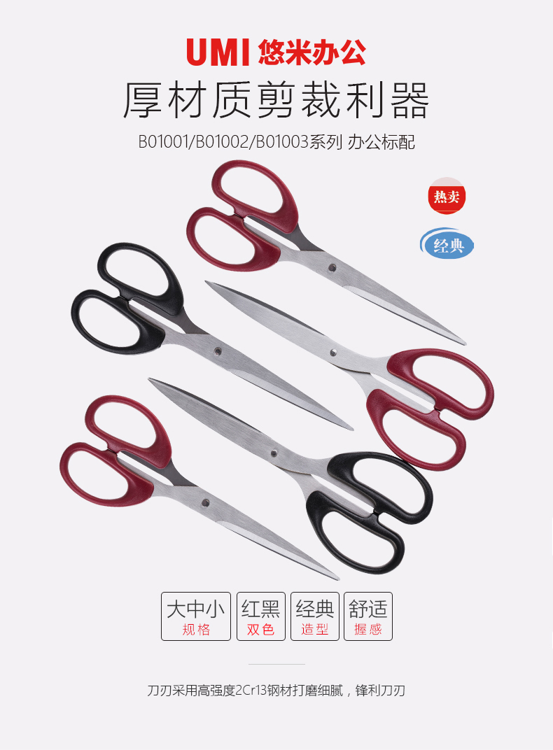 悠米 经典办公剪刀,大号 B01003R 红