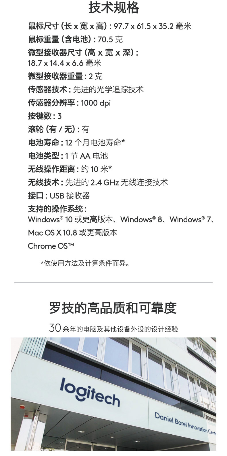 罗技M170无线鼠标 笔记本台式电脑光电鼠标 黑灰色