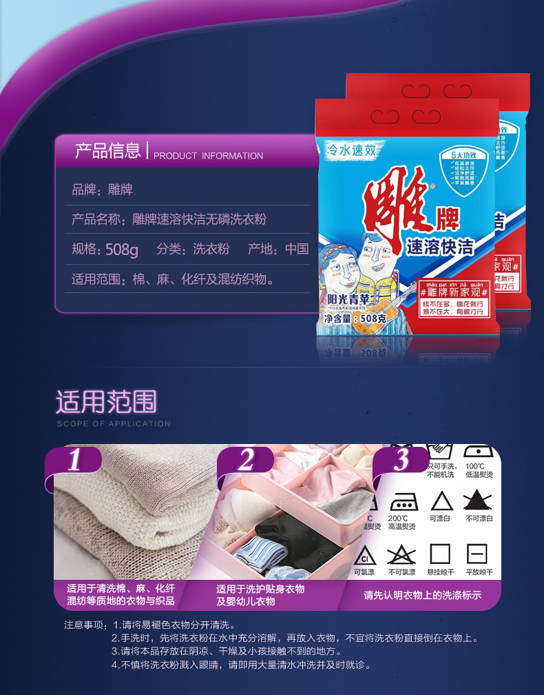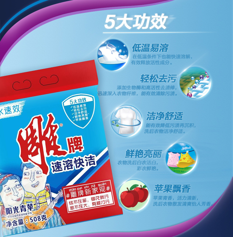 雕牌速溶快洁无磷洗衣粉 皂粉 508g