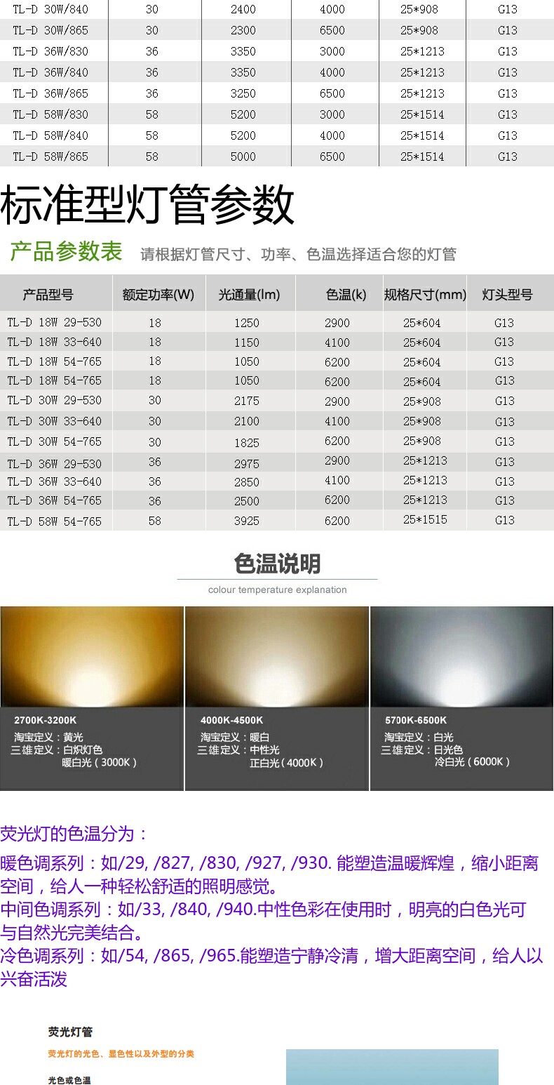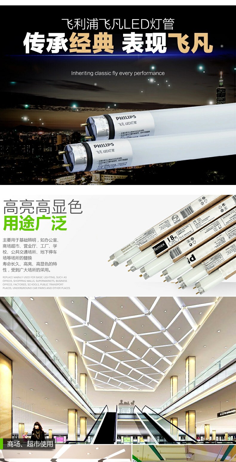 产品名称 : 飞利浦灯管18w 三基色灯管 T8日光灯管格栅灯 荧光灯管30w36wT8 865