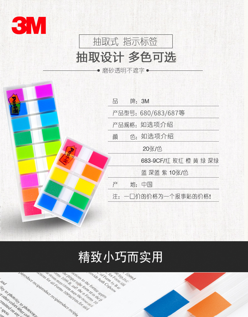 3M 683-5CF 透明指示标签 12*44mm 5色